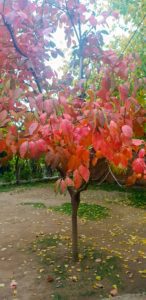 وقفت أمام طريقٍ طويلٍ وضيق تغطيه الأشجار من جانبيه، أغصان جرداء وأخرى تتطاير منها الأوراق الذهبية هنا وهناك ، نسمات باردة تلفح وجهي ودفء غريب يعتري قلبي، بدأت أحدث الفلاحين الذين لا يبخلون عليك بمعلومة وأسالهم عن كل شجرة ونوعها لأتفاجأ بما أرى وأسمع ، أشجار الرمان تصبح جرداء ويبقى الرمان الأحمر معلقاً بها كزينة شجرة الميلاد، أما أشجار لتفاح تصبح صفراء، والإجاص أحمراً، وأشجار المشمش والكرز والكاكي تصبح برتقالية اللون فلا تميز الورقة من الثمرة في جو وطقس خص به الله أرض دمشق وريفها.