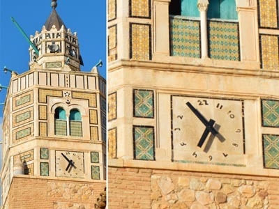تعلو صومعة الجامع الكبير ساعة غريبة ونجمة سداسيّة أثارت الكثير من الجدل حولها، فالبعض يرى في ذلك علامة تسامح وتواصل بين المسلمين والمسيحيين واليهود الى اليوم، في حين يرى البعض الاخر غير ذلك. ومهما يكن من أمر فالصّومعة لا تزال قائمة بجميع مكوّناتها السّابقة الذّكر.