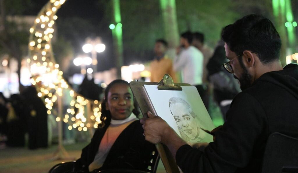 أشجار فاكهة الطائف.. باقات أنيقة محملة بالزهور الوردية في ليالي شهر رمضان