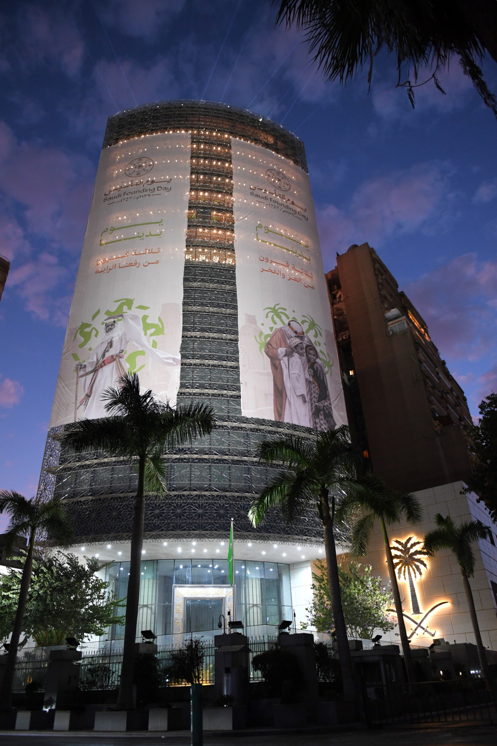 السفارة السعودية بالقاهرة تتزين بهوية يوم التأسيس احتفاءً بثلاثة قرون من المجد