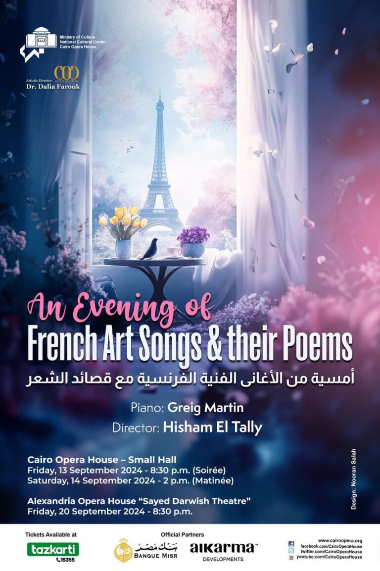 ” السلام عبر الإختلاف ..دع الموسيقى توحدنا ” للسوبرانو الكولومبية “جولييث لوزانو “الحائزة على جائزة الجمهور من الـ BBC (مغنية العالم ) لعام ٢٠٢٣ وبمشاركة مميزة للميتزوسوبرانو المصرية العالمية الفائزة بجائزة بريكس الفرنسية “فرح الديباني “وبمصاحبة عازفة البيانو البيلاروسية انستازيا شيتسكو وذلك في السابعة مساء الأربعاء ١١ سبتمبر علي المسرح الصغير .
