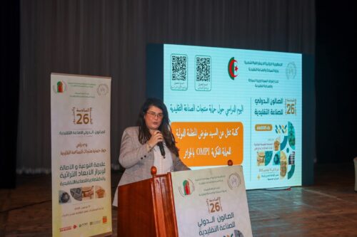 أشرفت على تأطير الجلسة، إطار تقني بمديرية العلامات بالمعهد الوطني للحماية الصناعية، حيث تم عرض تجارب ناجحة في استثمار العلامة التجارية كوسيلة لتسويق المنتوج الحرفي وتعزيز مكانته في السوق.