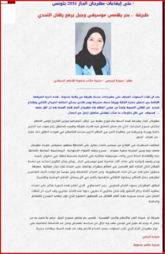 ” صوت الأرض الخافت ” مقال شاركت به الإعلامية سـنية ابيضي من مكتب تونس لمجلة السياحة العربية مع مجموعة 800 صحفي عربي في مسابقة 50 صوتا من اجل التغيير ” التي نظمتها منصة نيسابا ميديا
