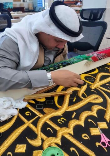 ويعمل في المجمع حرفيون وفنيون سعوديون ماهرون، يؤدون عملهم بكل تفانٍ وإخلاص، إدراكًا لعظمة المسؤولية المرتبطة بكسوة قبلة المسلمين.