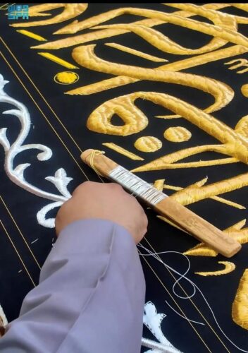 وتمر صناعة كسوة الكعبة بعدة مراحل دقيقة، تبدأ باختيار أجود أنواع الحرير الطبيعي المصبوغ باللون الأسود، ثم تطريزه بخيوط من الذهب والفضة، وتُكتب الآيات القرآنية والزخارف الإسلامية وفق تصاميم معتمدة تراعي قدسية المكان وعظمة المعنى.