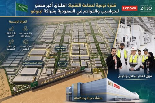 في خطوة تعزز مكانة المملكة كمركز عالمي للصناعات التقنية، تم اليوم التدشين الرسمي لمصنع شركة #لينوفو العملاق، المقام في المدينة اللوجستية المتكاملة بالرياض.