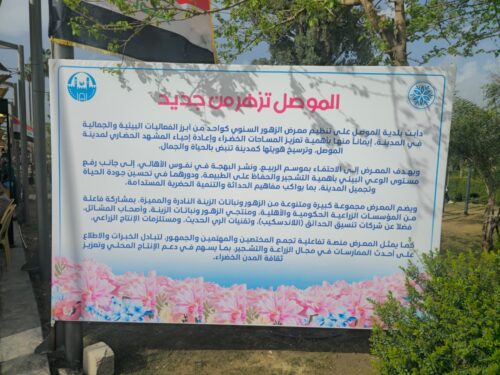تستعيد الموصل مكانتها كمدينة تتنفس الربيع مرتين في العام حيث تحيي ام الربيعين تاريخها الربيعي من خلال مهرجان الزهور والنباتات الذي اقامته بلدية الموصل على ارض حديقة الشعب بمشاركة ٢٥ مشتلا اهليا وحكوميا وسط حضور واسع للنساء والفتيات في مشهد يعكس تنامي الاهتمام بالبيئة والمساحات الخضراء وعودة الفعاليات الطبيعية الى المدينة بعد سنوات من التحديات