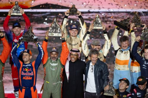 فاز القطري ناصر العطية سائق “داسيا ساندرز” بلقب رالي داكار 2026 عن فئة السيارات “ألتيميت”، وذلك للمرة السادسة في تاريخه، والثالثة له في المملكة العربية السعودية، في المنافسة التي احتضنتها المملكة للمرة السابعة، والتي ينظمها الاتحاد السعودي للسيارات والدراجات النارية، وتشرف عليها وزارة الرياضة.