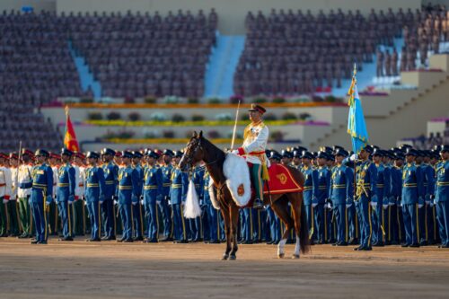 شمل حضرةُ صاحبِ الجلالةِ السُّلطان هيثم بن طارق المعظّم، القائد الأعلى للقوات المسلحة – حفظهُ الله ورعاه – برعايته السامية الاستعراضَ العسكريَّ الكبير الذي أقيم على ميدان الفتح بالوطيّة بمحافظة مسقط، في إطار احتفالات البلاد باليوم الوطني المجيد.