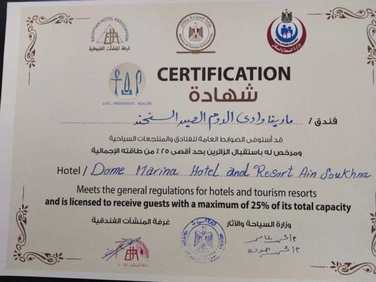 وتهيب وزارة السياحة والآثار بالمواطنين وشركات السياحة قصر التعامل مع الفنادق التي حصلت علي شهادة السلامة الصحية دون غيرها.