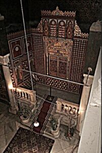 ويتكون المعبد من طابقين كبقية المعابد اليهودية، يخصص الطابق الأول للرجال والثاني للنساء، ويوجد في الوسط منصة الوعظ حيث تقرأ التوراة، وفي الشرق يوجد على منصة عالية تابوت العهد، الذي يحتوي على لفائف التوراة، يحجبه باب منقوش وستار من الداخل.