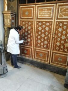 ومن جانبه أوضح الدكتور مصطفى عبد الفتاح معاون الأمين العام لترميم الآثار والمتاحف ورئيس اللجنة، أن أعمال الترميم بدأت بمنطقة قدس الأقداس؛ حيث شملت أعمال التنظيف الأولي للجدران والزخارف النباتية. ومن المقرر أن تتضمن أعمال درء الخطورة أيضا عزل الأسطح للحماية من تأثير الرطوبة الناتجة عن تسرب مياه الأمطار، ومعالجة الطبقات اللونية من تأثير العوامل الجوية المختلفة والتي أسفرت عن تراكم بعض الاتساخات، وكذلك معالجة الشروخ، مؤكدا على أن جميع أعمال الترميم سوف تتم باستخدام أحدث التقنيات المتبعة.