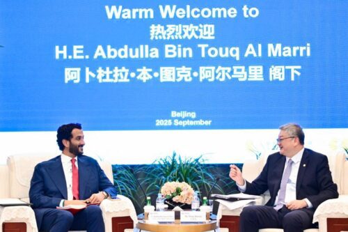 جاء ذلك خلال لقاء عقده معاليه مع سعادة وانغ هايمين، رئيس مجلس إدارة مجموعة الصين للسياحة، وبحضور سعادة شيخة ناصر النويس، الأمين العام المنتخب لمنظمة الأمم المتحدة للسياحة للفترة من عام 2026 حتى عام 2029، على هامش فعالية حوارات “إنفستوبيا – بكين” والتي نظمت في العاصمة الصينية، وشهدت مشاركة واسعة من قادة الأعمال والمستثمرين والمبتكرين والمسؤولين وصناع القرار ورواد الأعمال في البلدين.