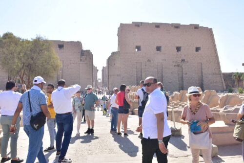 وأكد محافظ الأقصر، خلال لقائه بعدد كبير من السياح من مختلف الجنسيات، أن الموسم السياحي الحالي يبشر بانتعاشة كبيرة، مشيراً إلى أن المحافظة شهدت طفرة ملحوظة في تمهيد الطرق، وتحسين مستوى النظافة، والتشجير، والحفاظ على البيئة، إلى جانب تنظيم برامج تدريبية للعاملين المتعاملين بشكل مباشر مع السياح، مثل سائقي الحناطير، لرفع مستوى الخدمة وحسن التعامل.