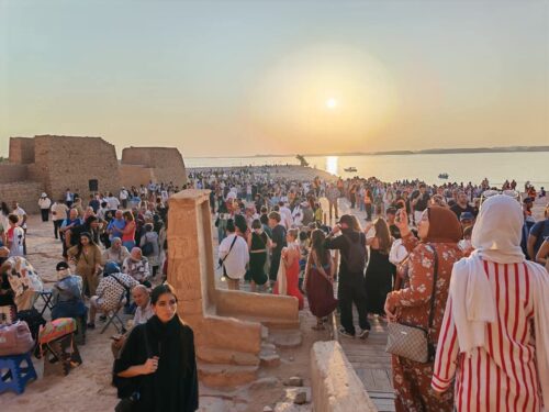واستمعوا بالعروض الفنية والفلكلورية لفرق الفنون الشعبية التابعة لهيئة قصور الثقافة، وسط حضور محافظ أسوان ومدير الإدارة العامة للآثار المصرية واليونانية والرومانية بأسوان.