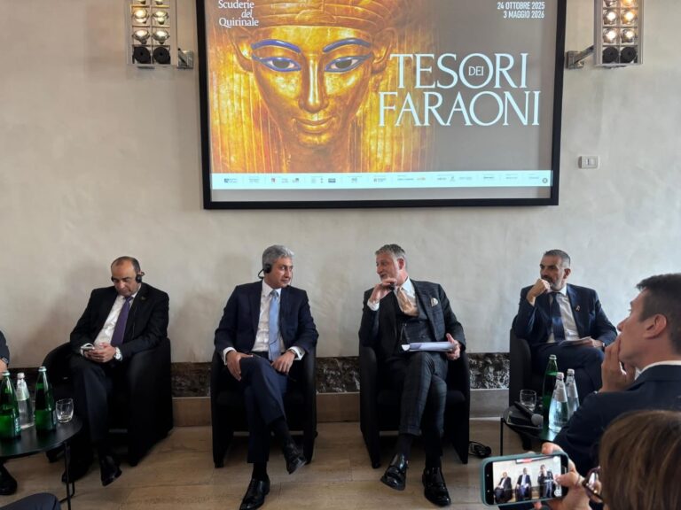 يشهد معرض “كنوز الفراعنة”، المُقام حالياً بقاعة Scuderie del Quirinale بالعاصمة الإيطالية روما، إقبالًا جماهيريًا واسعًا منذ أن قام سيرجيو ماتاريلا رئيس جمهورية إيطاليا بافتتاحه رسمياً قبل يومين، و شريف فتحي وزير السياحة والآثار المصري، والسيد أليساندرو جولي وزير الثقافة الإيطالي، د. محمد إسماعيل خالد الأمين العام للمجلس الأعلى للآثار، حيث توافدت آلاف الزائرين الذين اصطفوا في طوابير طويلة منذ الساعات الأولى من الصباح للاستمتاع بروائع الحضارة المصرية القديمة.