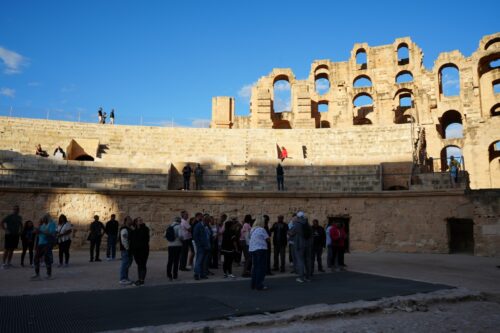خلال الجولة، اطّلع الزوار على دقة الهندسة الرومانية التي تُميز المعلم بأبعاده الهامة (148م × 122م) وحلبته الواسعة (65م × 39م)، إلى جانب تاريخه العريق الذي حوّله عبر القرون من فضاء للمصارعة الرومانية إلى مسرح عالمي يحتضن أرقى العروض السيمفونية والموسيقية.