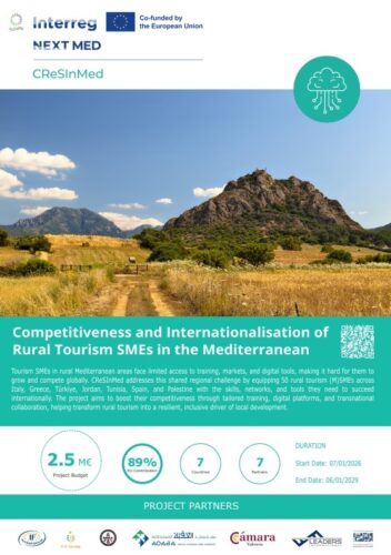 تشارك تونس، ممثلة في وزارة السياحة، في المشروع المتوسطي الطموح “CRESinMED” الذي يهدف إلى دعم وتطوير المؤسسات الصغرى والمتوسطة العاملة في قطاع السياحة الريفية. يسعى هذا البرنامج إلى نقل هذه المؤسسات من النطاق المحلي المحدود إلى التنافسية الدولية، عبر تزويدها بآليات حديثة لرفع جودة الخدمات وتحسين صورتها في الأسواق العالمية، مما يجعل السياحة الريفية رافداً أساسياً للاقتصاد الوطني