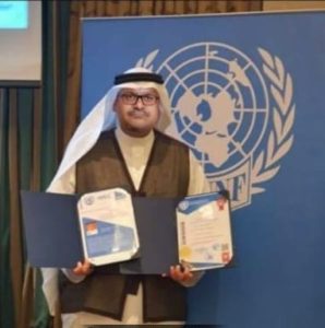 وقد سلمه الشهادات سعادة الدكتور أيمن وهدان مدير فرع الفيدرالية العالمية للأمم المتحدة في الشرق الأوسط ومقرها القاهرة..