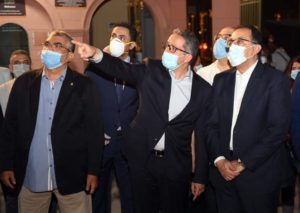 واستهل رئيس الوزراء جولته، بتفقد اعمال التطوير التى شهدها المتحف المصرى بالتحرير، والتى تضمنت رفع كفاءة الحديقة والنافورة المقامة بمقدمة المتحف، وكذا أعمال الاضاءة التى تم تنفيذها لواجهات المتحف، وشملت أسواره الخارجية والحديقة الخاصة به، وتمت الإشارة إلى أن تلك الاعمال تمت بالتعاون مع وزارة قطاع الاعمال العام.