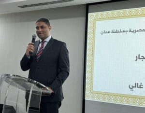 فيما أكد كلمة الدكتور عبدالرحمن عاصي، رئيس نادي الجالية المصرية بسلطنة عمان على أن هذا الاحتقال يأتي في إطار دور النادي في تكريم الشخصيات الوطنية على دورها في خدمة الوطن وأبناء الجالية وكذلك دعم العلاقات بين البلدين الشقيقين، حيث قال: ” تكريسا للمبادي التي يقوم عليها نادي الجالية المصرية ومن منطلق الوفاء لأحد الشخصيات التي حازت علي اجماع ومحبة غير مسبوقة بين أبناء الجالية المصرية بالسلطنة، نلتقي اليوم على موعد لتكريم أحد رجال مصر الأوفياء الذي أدى عمله فأتقنه، والذى لمسنا فيه البذل والجهد المخلص، والعطاء والتواضع، فلقد كان سندا لأبناء الجالية المصرية، قريباً متفاعلاً ومشاركاً في كافة المناسبات وهذا ما بدا جلياً منذ أن بدأ مهام عمله لم يتوان يوماً عن التواجد كسند بارزا للنادى ومجلس إدارته فى التفاعل والاستجابة والمتابعة بما يعود نفعاً على أبناء جاليتنا المحترمة.. ألا وهو العقيد أركان حرب رامي النجار ملحق الدفاع في سفارة جمهورية مصر العربية