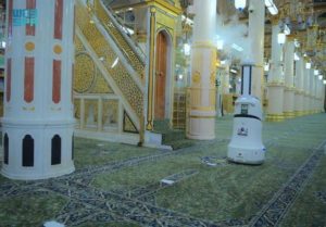 واطلع الدكتور السديس خلال الجولة الميدانية على تقنيات جهاز الذكاء الاصطناعي “الروبوت الذكي” الذي يستخدم لتعقيم وتطهير المسجد النبوي، الذي يعتمد على خاصية النفث عبر البخار الجاف بقدرات متعددة بدون استخدام أي مواد كيميائية, ودون التأثير على الإنسان, وباستخدام تقنية تعدّ الأعلى عالمياً لمكافحة الفيروسات والميكروبات العالقة على الأسطح والسجاّد.