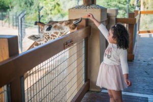 وتوفر الحديقة العديد من التجارب التعليمية والترفيهية مع الزراف في ثلاثة معارض مختلفة ضمن الحديقة هي المعرض الأفريقي، ومعرض إطعام الزراف ضمن منطقة صحاري العالم وفي وسفاري العين الأفريقية حيث تتواجد مع مجموعة متنوعة من الحيوانات الأفريقية.