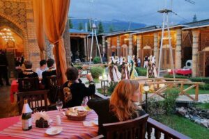 كما يقدم أفضل الأطباق الأوزبكية التقليدية، كطبق الزفاف أو بالوف، الذي يعتبر الطبق الأساسي المصنوع من “الثوم، الأرز، الجزر، الضأن، الزبيب والحمص”.